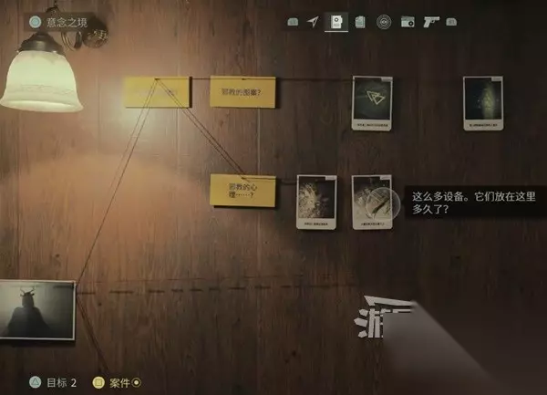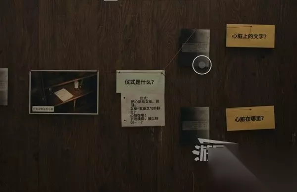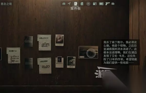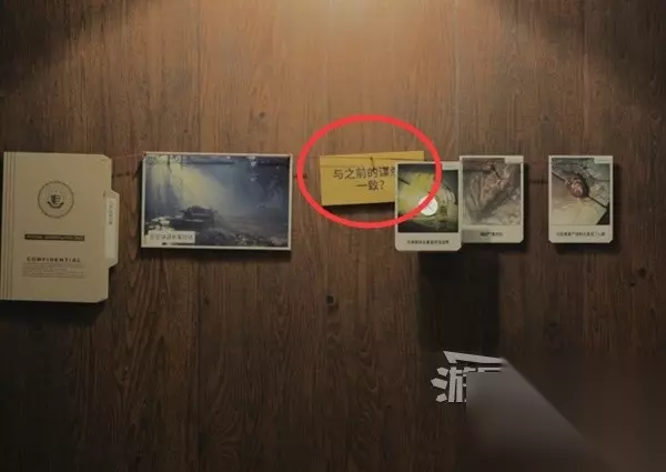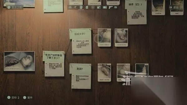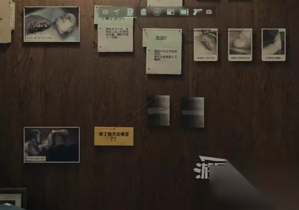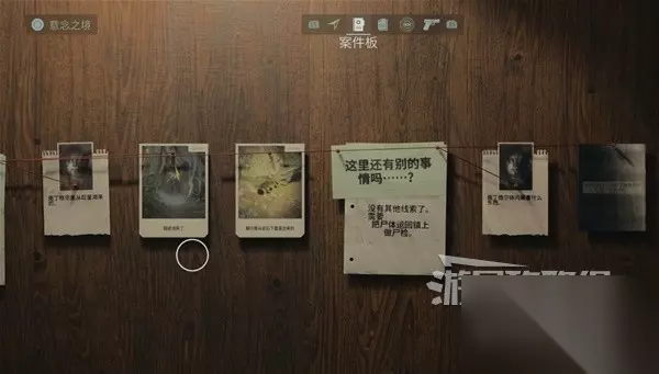 在谋杀现场调查尸体后,把线索都放到案件板上。注意要把线索图片放到黄色的问题上点击确定,线索图片就会自动落到案件板上。