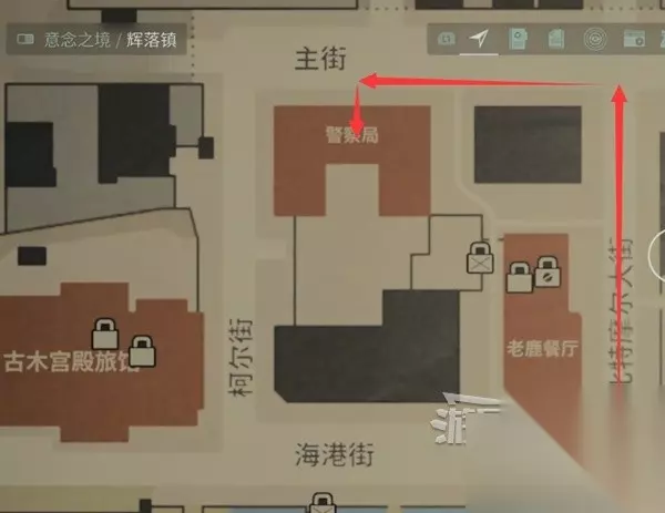 进门右拐,墙上拿到辉落镇的地图。旅馆往里走,壁炉上面墙上有个【鹿头】。