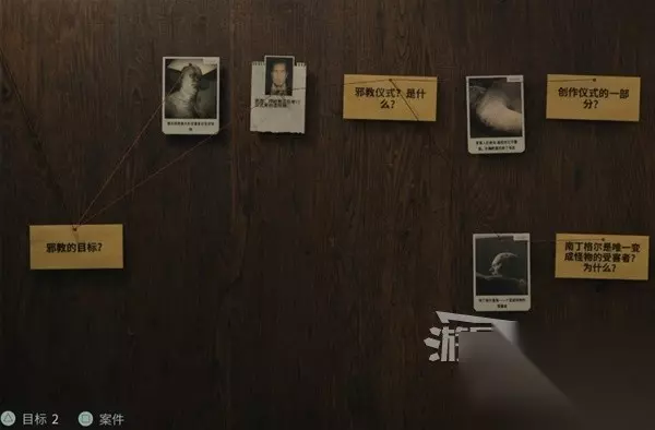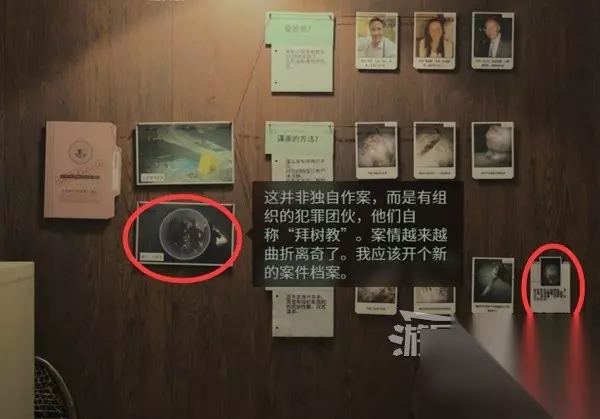 然后切换到拜树教案件,把目前获得的线索都放到案件板上。