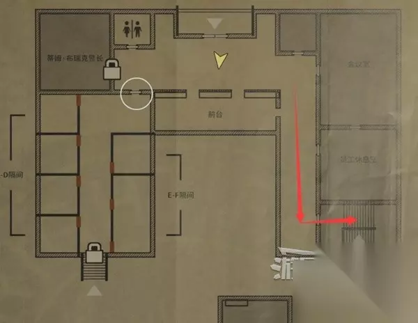 跟着箭头走,下图位置拿到钥匙,用钥匙打开保险箱拿到补给。