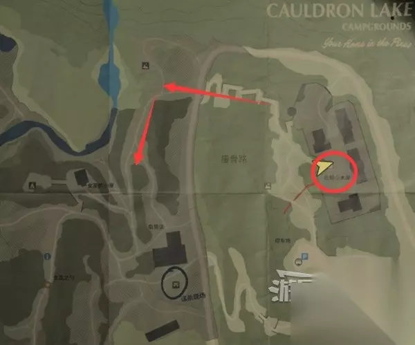 文章内容导航 回归1-邀请 谋杀现场 跟随桑顿来到谋杀现场,调查尸体之前,可以先搜索下附近。 谋杀现场西面,下图位置营地旁有个【午餐盒】。