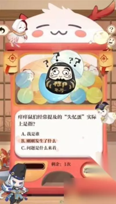 6、痒痒鼠们经常提及的“失忆蛋”实际上是指? 答:B、刚刚发生了什么