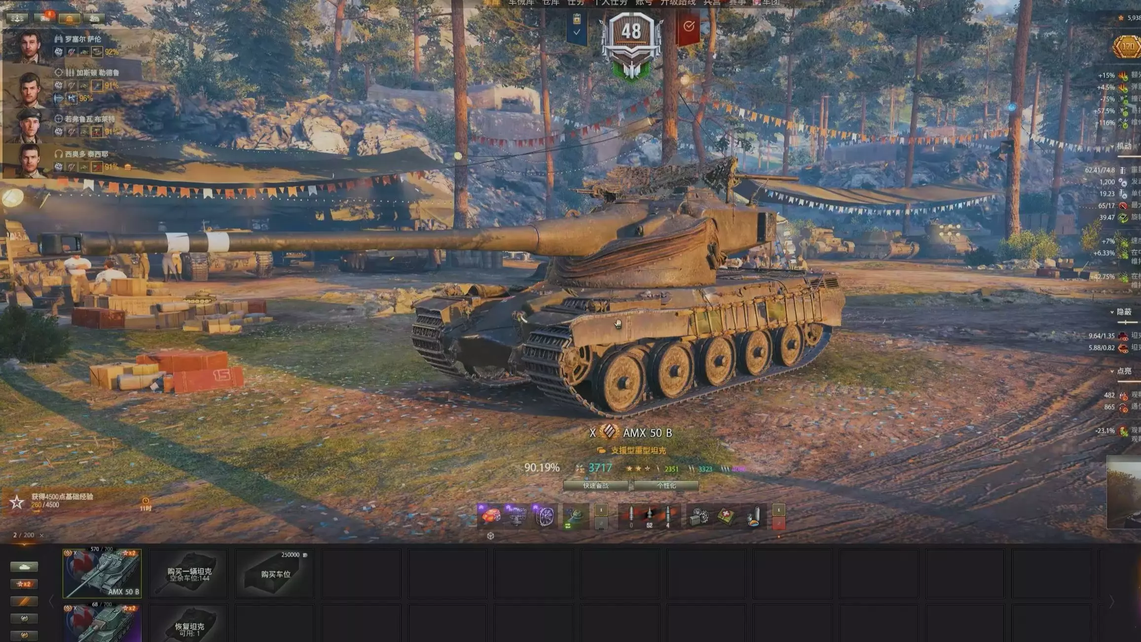 同样作为四法弹夹重坦,50B可以说是要什么没什么 非常不推荐大家练的一条线,但是马上XI级车的出现,不知道新车强度会不会有所提升 有三环、任务、银币业务需求的兄…