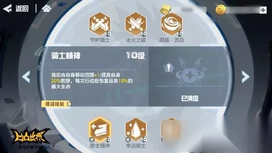 安迷修在高攻击面板的加持下,释放出强大的AOE攻击。对方血量越低,伤害越高,可视作带有斩杀效果。 【被动技能:骑士精神】 首回合自身移动范围+1;提升20%物理穿透;每次行动后恢复自身10%的最大生命。