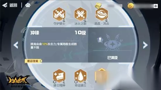 游戏中少有的光环类技能,女性角色群体减伤,能够大幅降低奶妈的压力,在高压战局中会有优异的表现 【被动技能:冲锋】 提高自身10%攻击力;专属地格生成数量不限。