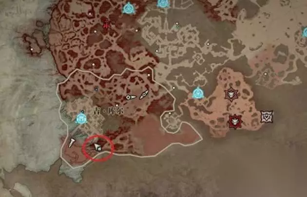支线:幻影 凯基斯坦沙漠中可以接到这个任务(图中红圈位置),东边就是干燥平原的基兰岱传送点。