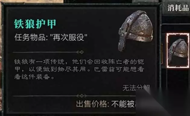 支线:再次服役 除了武器,你在卡尔蒂姆打怪还可能掉落护甲,触发再次服役任务。