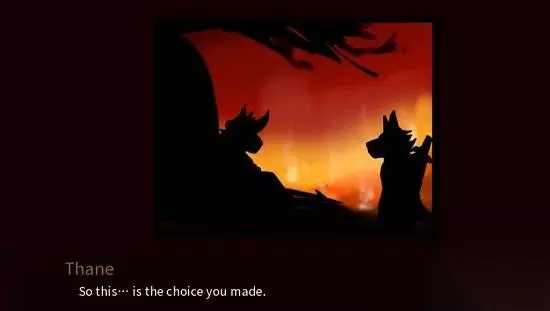 说明27、 变色龙 55、打败变色龙后,事情基本告一段落,如果是战争线则不会触发打变色龙的剧情。 PS:战败会触发狼X狼的CG。 交付: 每条线(除了Axel是把Eyvind叫过去)最后都会有对应角色在湖边与主角谈话,心灵对话。 Thane线:打败变色龙后,误会解开,双方停止战斗,双方首领分别向Eyvind道歉,获得一个和平图腾。Thane会在湖边对Eyvind吐露心声。 PS:之前是否阻止Axel绞刑,对话会有所不同。 Nauxus线:①和平线:基本上和Thane线结果类似,只是最后在湖边与Eyvind对话的是还是thane,且对话不同于thane线。要求好感度≥3、 ②战争线:这里也有两个不同结局,分别对应Thane是否搬到了酒馆居住。最后会获得一个蜥蜴图腾。 搬去酒馆的Thane得知村子被烧毁后,在极度悲愤的情况下,最后会去蜥蜴村送死…… 没有搬去酒馆的thane结局更为悲壮: