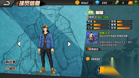 3、晗晗 晗晗是pg球员当中得分能力最差的,但也是团队辅助能力最强的,较高的抢断属性与背后抢断的天赋技能,让晗晗可以在最短的时间内,从最刁钻的角度将球拿到自己的手中,而篮下区域往往是背对我们最多的地方,所以也是我们大展拳脚最好的地方。因此,技能的选择上有: 花式突破、棒球式传球、后撤突破、滑行截球
