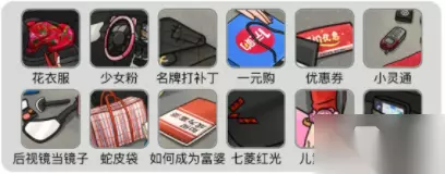 1、我们可以在图中看出来这些不符合的物品: 车上的花衣服、方向盘的少女粉、胶布固定的屏幕、老牌打补丁、一元购、 优惠券、小灵通、后视镜当镜子、蛇皮袋、如何成为富婆、七菱宏光、儿童手表。 2、当我们找出如下图所示的这12件物品之后,我们就可以顺利过关了。