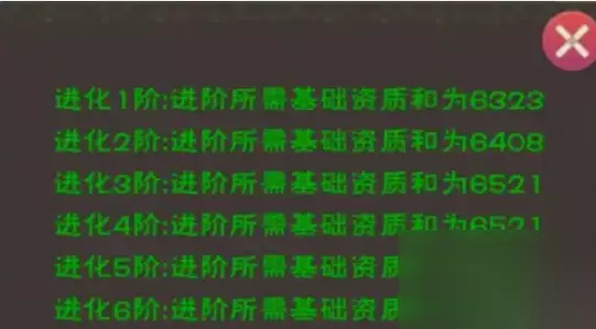 进阶所需基础资质: 龙血拳皇资质需要达到指定标准才能进行进阶 具体资质要求算法如下: 基础资质和=(初始攻击资质+初始生命资质)*1000