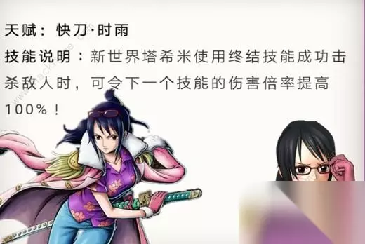 塔希米是燃烧意志里一位十分不错的sr,同时也是游戏里少有的双斩系角色,那么大家知道她的加点方案吗,为此,小编就带来了航海王燃烧意志塔希米加点推荐,一起来看看吧! 加点推荐 在技能选择方面,前期到达19级的时候,就能够解锁四个主动技能和一个奥义技能。奥义技能不用说,直接装上即可。在主动技能的选择上,这四个里面,建议带“薄霞·闪”、“薄霞·暮”以及“时雨·峰”或者“时雨·轮”其中的伤害较高的一个。 这样的选择,既能够照顾到范围伤害,有能够有一定的单体输出,适用的战斗范围会比较广。 当等级来到30级的时候,可以解锁一个终结技能“斩时雨”,是一个单体伤害技能,直接替换掉之前的“时雨·峰”或者“时雨·轮”中的一个即可。