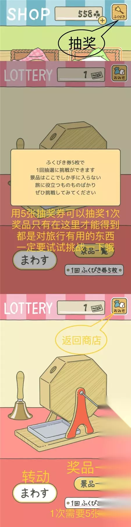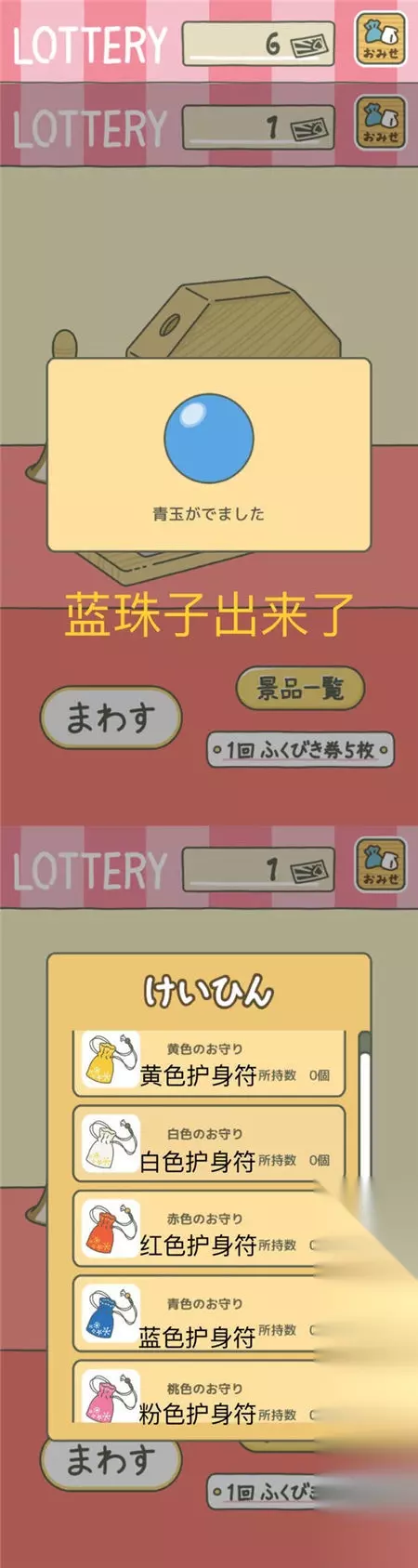 带着9张抽奖券去抽奖了,目前总结出以下奖品规律 白色珠子:一张抽奖券 绿色珠子:各种食物(这次我就选第一个胡萝卜糕了) 【首次购买道具】