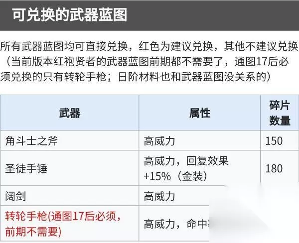 一、推荐顺序:建议玩家优先兑换“铁臂符文”以及“守护符文”,随后将所有符文蓝图兑换。因为兑换完符文蓝图开启转职材料兑换,武器蓝图即便不兑换玩家也可以开启转职材料兑换。 二、开启条件:修复吊桥,然后按照系统任务提示以及红袍贤者的对话开启。 三、可兑换的奖励 1、武器蓝图