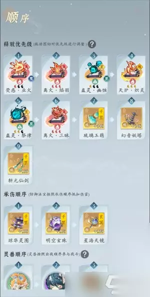 灵界篇: 神通:揽星-六耀-星移-业火-炎舞-三味(焰羽没到天阶用揽星,天阶以后揽星不带了,焰羽天阶放5号位,炎舞放1号位) 异宝:预算够6000直接拉满3个地图礼包+商城周礼包,目前加成最多,然后先升法宝威能,升金色的,平均点到10级,金色异宝拉满在升紫色的,仙玉优先买满古地地图的升级材料跟钥匙 法相:青龙法相(焰羽+三味有小核爆,图3法相暴击叠加神通词条的伤害) 法宝:3+3 天命观星:劫焰+业火 天命道蕴:业火 命火:3通明+3太玄+3真武 灵兽:化形1,技能全部60+,鸟最少要6个技能,白板鸟到灵界不够看了 诸天商店:换炎舞,六耀,业火,道业,玄奥石,活动全部参加竞猜全猜14天可以换完3个神通的2个本体+2个资源,还剩6000-8000诸天玉到下一轮