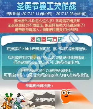 近期,DNF圣诞节新版本已经上线了,在本次的新版本中,增加了很多的新活动,其中有一个圣诞节罢工大作战的活动需要找到驯鹿精灵和雪花精灵,那么它们的位置在哪呢?下面就来介绍一下。 DNF驯鹿精灵在哪里? 活动中玩家需要在阿拉德的大陆中找到藏起来的圣诞雪花精灵以及圣诞驯鹿精灵,之后就可以通过他们获得圣诞礼物。 想要获得圣诞礼物首先大家需要获得圣诞糖果,使用圣诞糖果去兑换圣诞礼物的。玩家通关推荐地下城击碎圣诞树就可以获得圣诞糖果了。 开启圣诞礼物就可以获得圣诞硬币,大家可以使用圣诞硬币在赛利亚的房间里面的圣诞老人的地方换取奖励的哦。 圣诞老人npc可以兑换获得的奖励有远古材料礼盒,圣诞复活币礼盒,圣诞品级调整箱礼盒,圣诞老人的防虚弱药剂,还有圣诞平安果,小雪人,雪人妈妈,雪人爸爸,礼盒装饰,冬青挂件,圣诞树和定制贺卡。 要准备的礼物那么的多,圣诞雪花精灵和圣诞驯鹿精灵不堪重压,大家快快去帮助圣诞老人吧。用糖果去把精灵们喊回去吧。 有趣的是,掉落的材料为圣诞糖果,而兑换所使用的材料为圣诞硬币,根据活动提示,需要找到藏在阿拉德大陆的雪花精灵和驯鹿精灵,是的的确是藏。