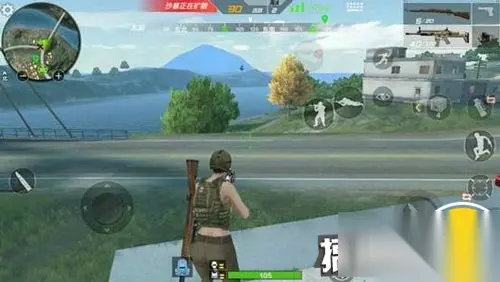 兵工厂外面的马路是一个刷车点,沙暴圈不在兵工厂就找车跑路咯。如果运气足够好沙暴圈在兵工厂这边,那我们可以选择在桥边的楼顶守一波桥,收取过路费。切记上楼时要把一楼门全都关好,不然其他玩家偷偷摸上楼来还不知道。除此之外我们有倍镜可以观察河里以及河岸边有不有跑沙尘暴想偷渡过来的玩家。