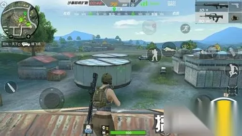 兵工厂有一个可以上楼顶的大仓,可以沿着后面的楼梯上去站在楼顶观察。如果有玩家向这边搜寻物资过来,我们完全不用着急,等到他快要接近仓库的时候再开枪偷袭他,这样节既省了搜寻时间还可以淘汰掉他。