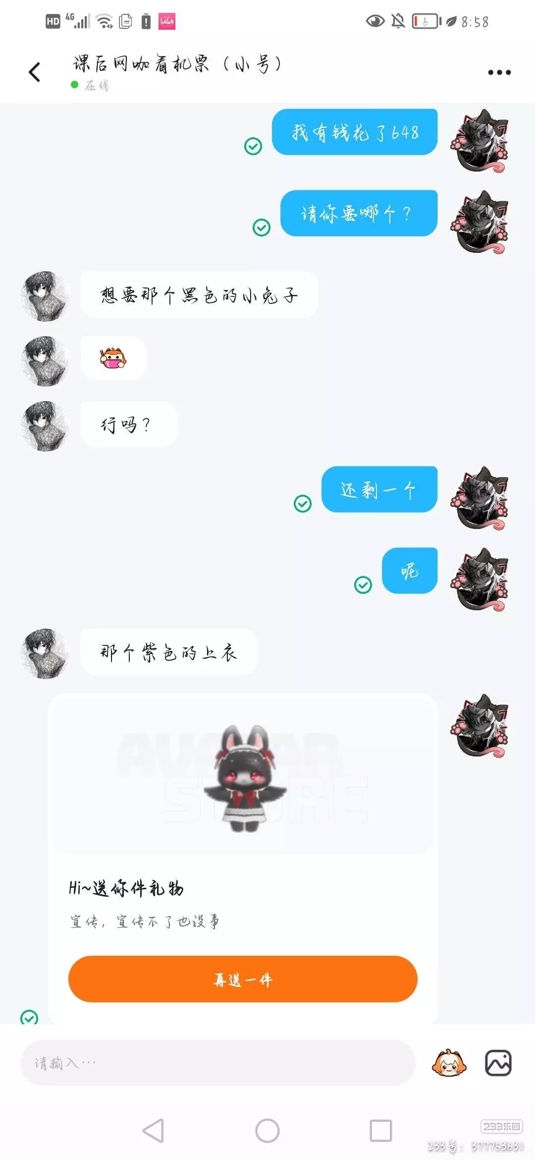 今天送太多了,别人找我要礼