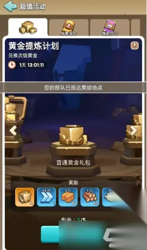 奔奔王国中黄金提炼计划是重要活动之一,参与的玩家可以免费获得77以上黄金,然后使用次级黄金兑换火晶礼包,拿到丰厚的资源,这里带来黄金提炼计划活动平民攻略,各位来看看吧。 奔奔王国黄金提炼计划活动详解 1.活动每2周一期,每期持续2天,活动玩法用次级黄金兑换火晶礼包,次级黄金来源分为: -免费:采集资源5份+消耗体力5份+钻石购买15份,合计25份,零氪玩家可以攒2期次级黄金换区一份第二档黄金礼包; -付费:30/68/128/328 元礼包,可获取50/100/200/500次级黄金;