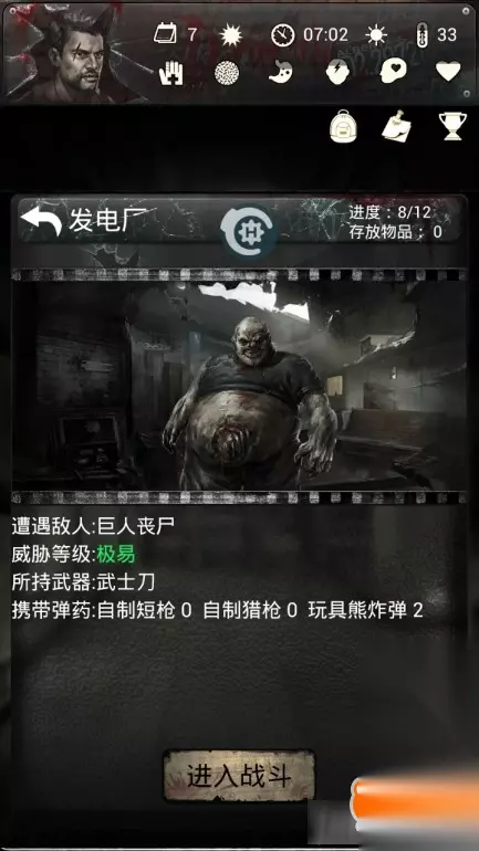 发电厂巨人怎么打 首先你得有帽子和棉衣,其次带了武士刀天赋,用的武器(如图)