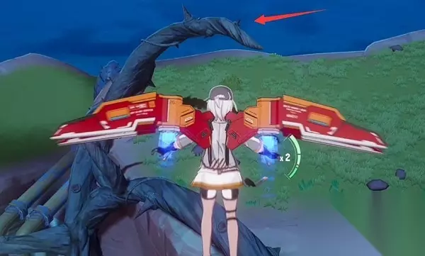 四、北部环山 坐标:(-865.6,682.0) 首先传送到星岛避难所,然后往东北方向走,来到图示位置后飞上左边的悬崖,一直飞到最顶上就能解锁。