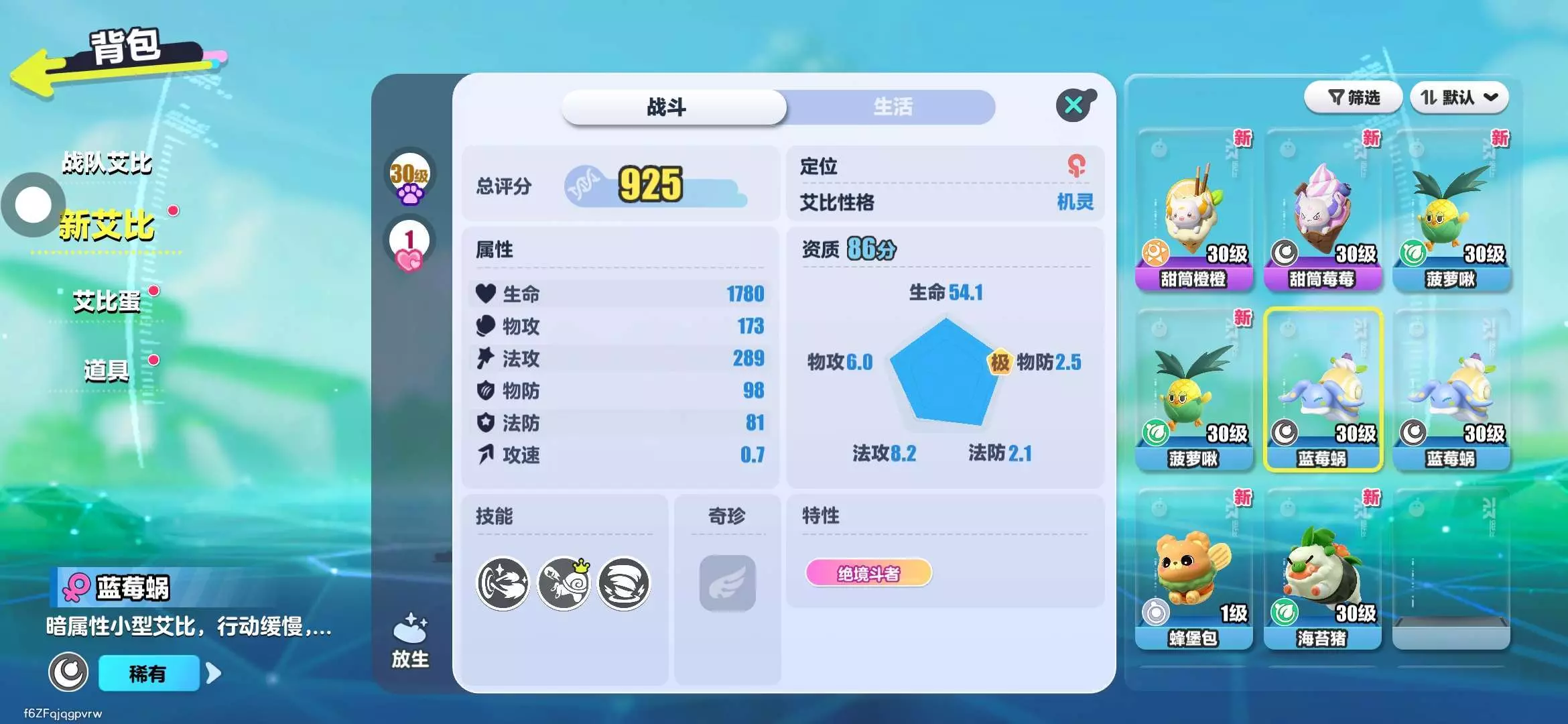 不是吧,甜筒橙橙旁边的小弟蓝莓蜗这么高分?还好我随手把它捉了。虽然不是野生的彩光,但可以喂果子
