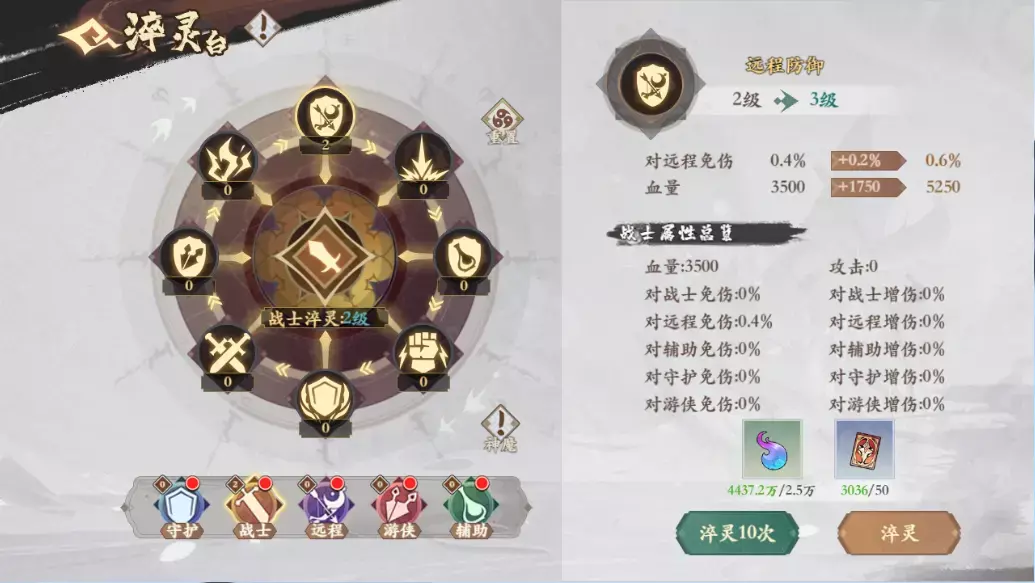 2.神魔英雄是生效最高等记淬灵台加成的,所以我们可以根据敌方是什么阵容,来进行优先加点高等级的职业加成,对方是战士队主C,我们就可以选择优先加点我们有战士增减伤的加点。来让神魔英雄加成对战士英雄的增减伤。
