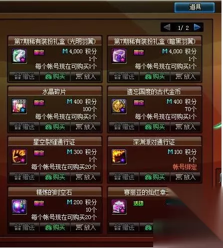 积分商城商品调整:下架了+10装备强化卷以及装备强化器礼包,添加第七套稀有装备礼盒光明羽翼和黑暗羽翼售价4000积分。 梦想装扮合成器(可代币购买):梦想装备合成器商城售价为6900点卷,此次梦想装备合成器玩家通过八件时装可合成一件第七套天空。(dnf极天幻翼套) 关于DNF天空光明极天幻翼套特效外观的内容就是如此,想要了解更多内容,尽情关注到我们。 DNF2020活动 欲望之塔
