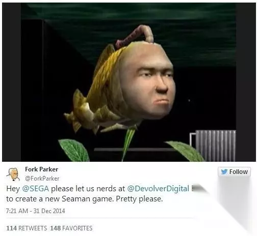 说到这里,小编还记得早在 2015 年,《迈阿密热线》和《塔罗斯法则》开发商Devolver Digital就尝试通过推特获得世嘉许可制作旗下的《人面鱼》新作,至于是否达成合作,双方并没有透露更多信息。