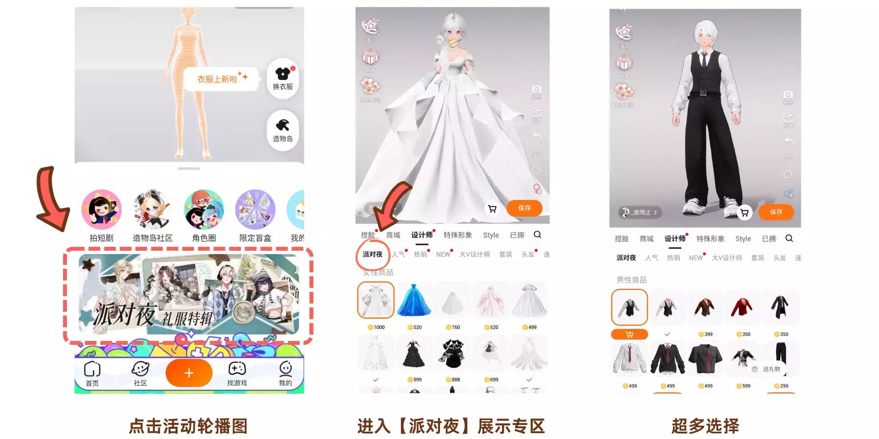 点击活动轮播图进入专区,不仅仅有绝美礼服和帅气西装,超多选择任你搭配!#233角色时装周刊