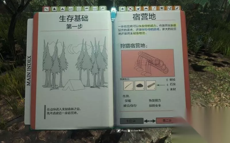 «12345678910»友情提示:支持键盘左右键"←""→"翻页 二、野外生存指南(上手教程) 1、建立营地 玩家一开始需要建立营地,以作为生存的基础设施。 点击生存指南,选择宿营地。 可以选择不同的营地,消耗的原料也不同。