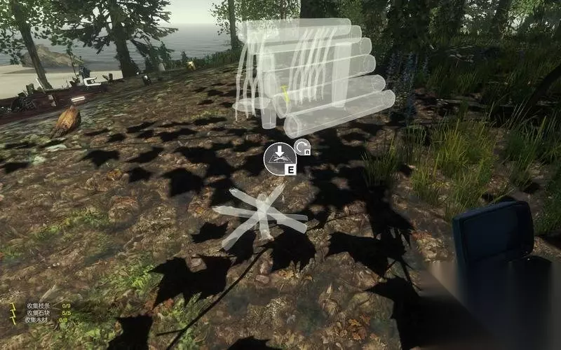 收集到材料后就可以到建筑虚影处进行建造了。 按E就能将材料使用到建筑上。