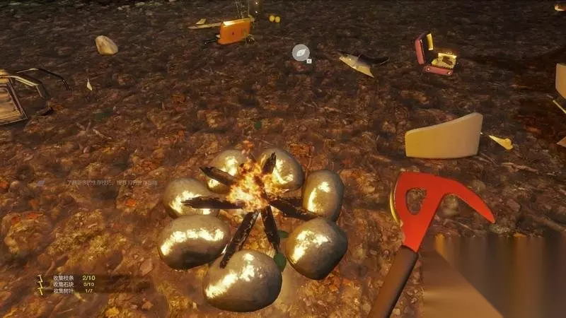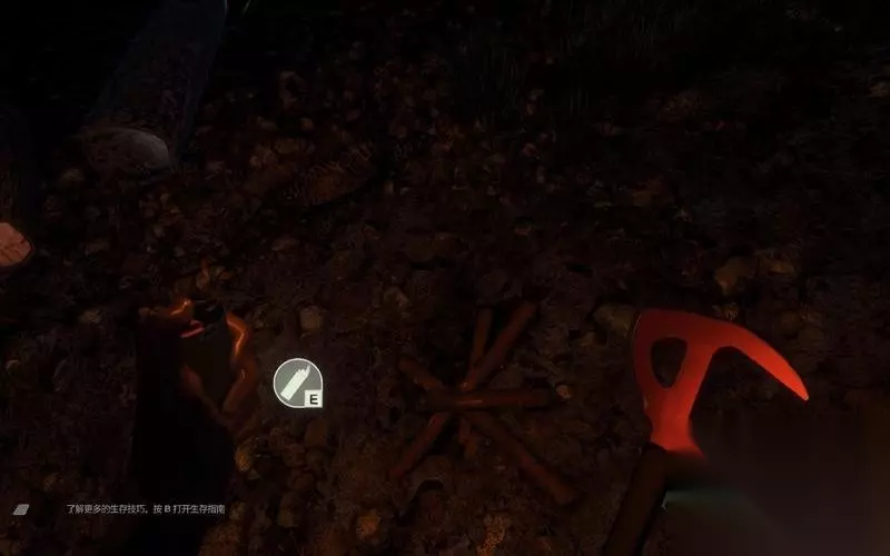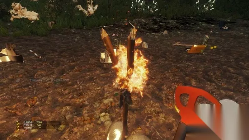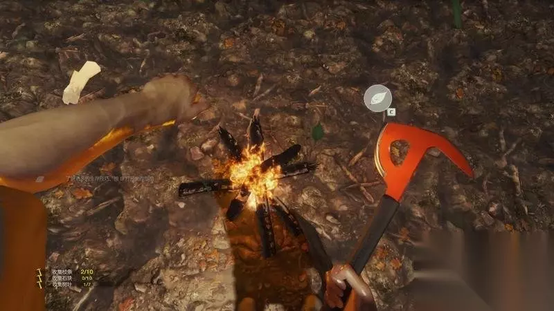 同理,在搜集到树叶和树枝后,营火也能建立。 这时需要利用打火机点火。