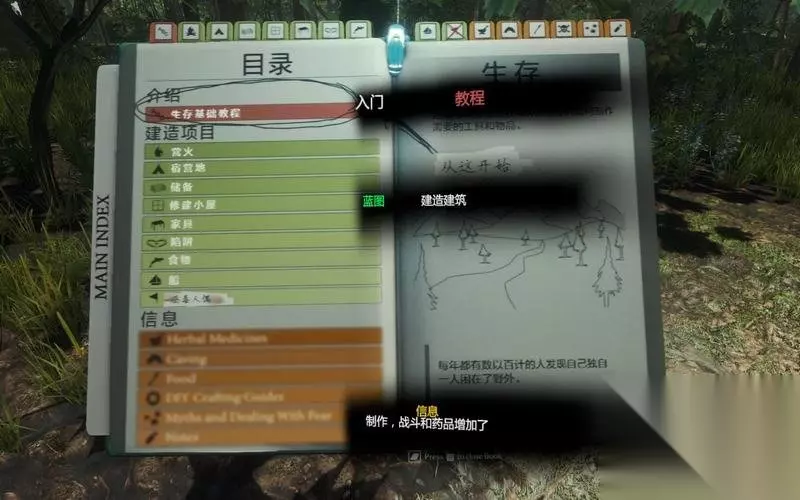 生存指南 游戏建筑和信息的基本工具界面。 玩家可以通过该界面进行建筑设置。 目前游戏信息还不可用。