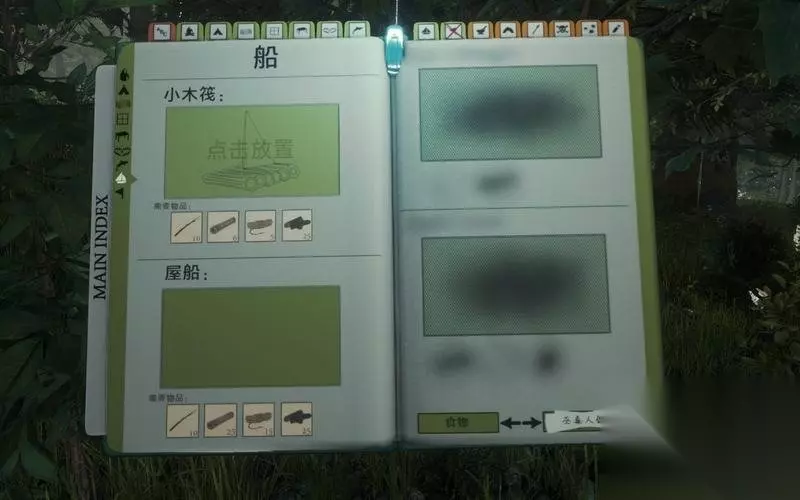 8、船 森林中除了大片树林,还有河流。 渡河探索或者沿河搜寻都需要船只的帮助。