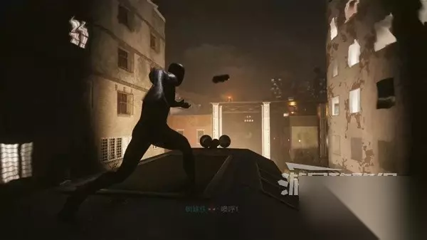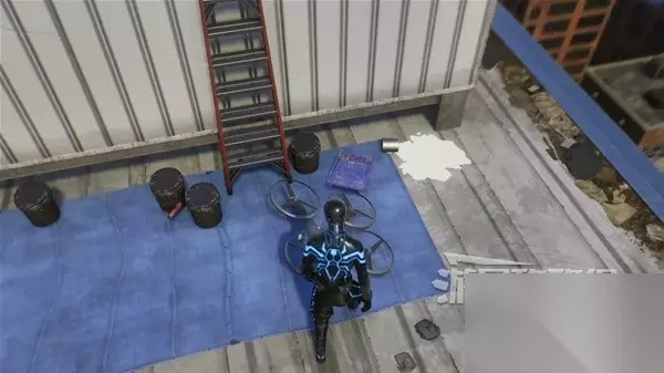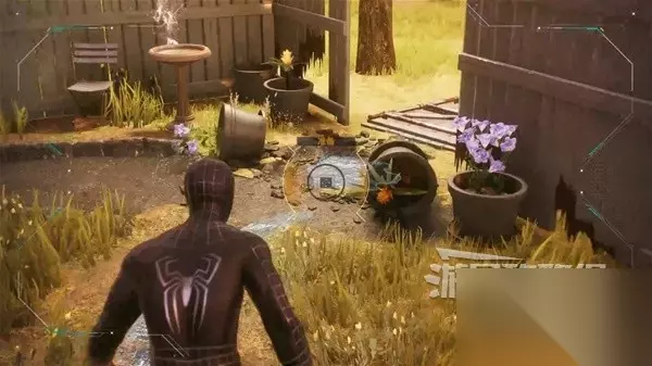 看到小猫,并从断裂的木板跌落后,往前走会看到蜘蛛侠的玩偶,投掷石头将其砸下。