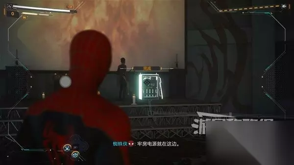 沿着道路走,蜘蛛机器人的使命就完成了,接下来操作蜘蛛侠进入战斗。
