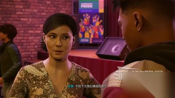 这一关是操作海莉进行任务,并且听不到任何声音。来到画得乱七八糟的涂鸦前对话。