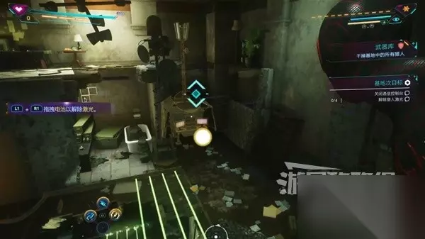拖拽电池可以解除激光,小心电池旁不能有敌人。