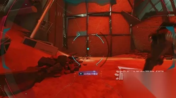 当被挡住后,使用脉冲爆破就可以打破障碍物通过了。