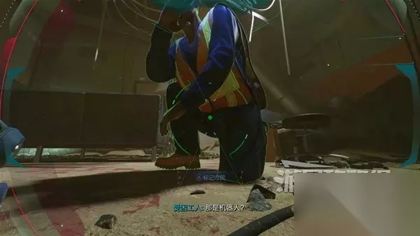进门后,轰开障碍物,标记第三个工人。
