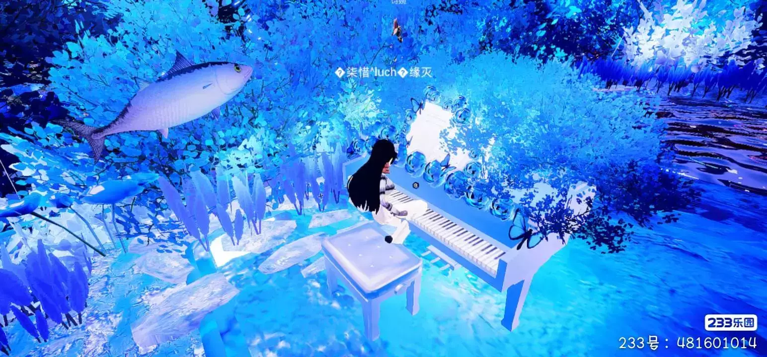 场景以海洋主题为基底,蓝调光影铺陈出梦幻感——巨型鱼群游弋、水草随波摇曳、气泡串串轻浮,仿佛将“海底星空”搬入现实。在七夕语境下,海洋的“深邃与浪漫”天然呼应爱情的“神秘与永恒”,为爱意传递打造沉浸式氛围
