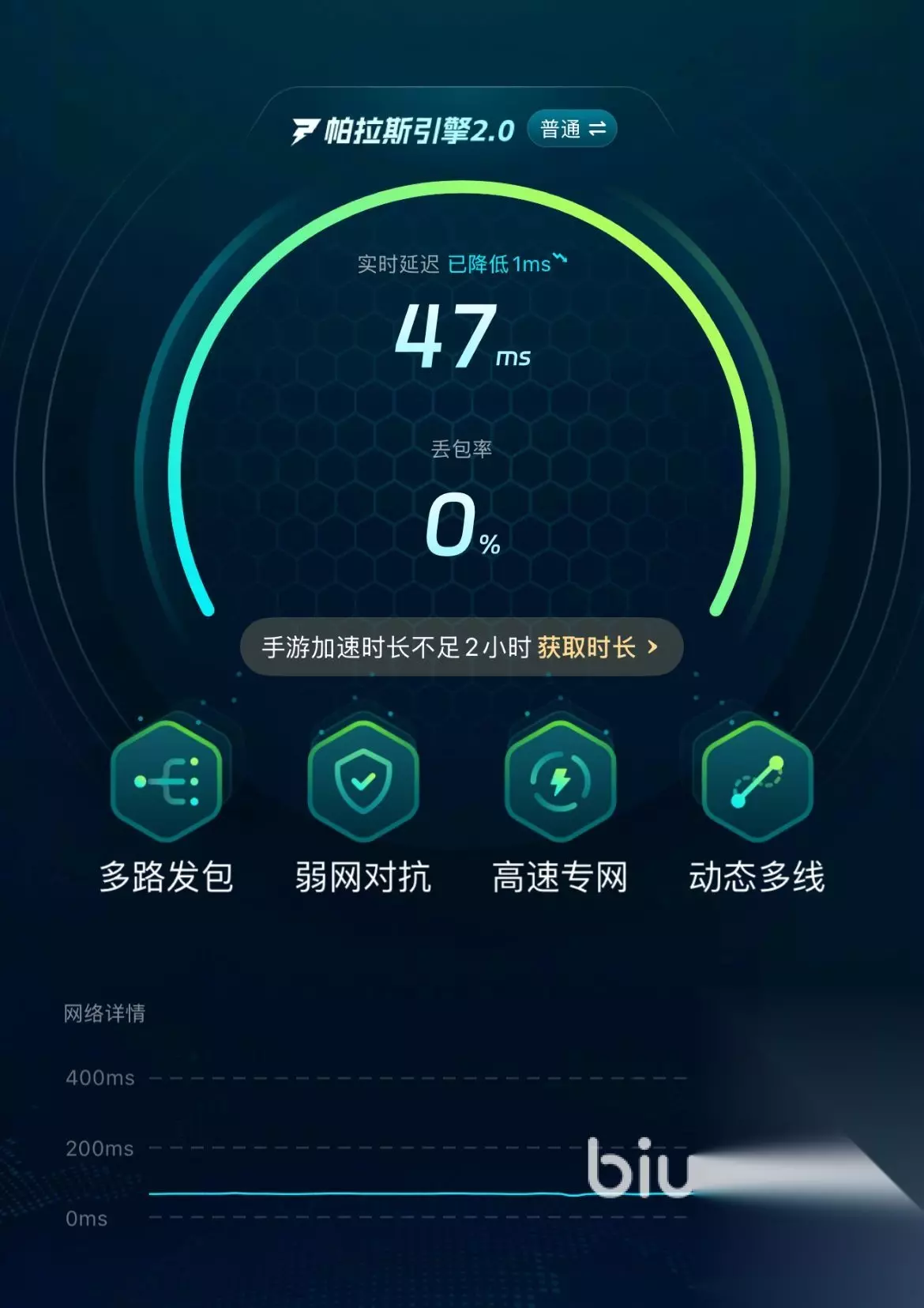现在biubiu对手机游戏提供免费加速服务,不仅可以给手游提供优化服务,还可以给swich游戏主机提供优专业加速服务。根据当前的网络环境提供最适合的线路和节点,高效降低延迟和丢包,ping值也是持续控制在绿色状态下,提供稳定流畅的网络环境。伙伴们可以通过后台清晰的查看到各项被优化的数据,对当前的网络有一个更加深刻的了解,从而能够更加专注游戏本身,在对应的社区中还能查看到其他伙伴分享的攻略和热门资讯。
