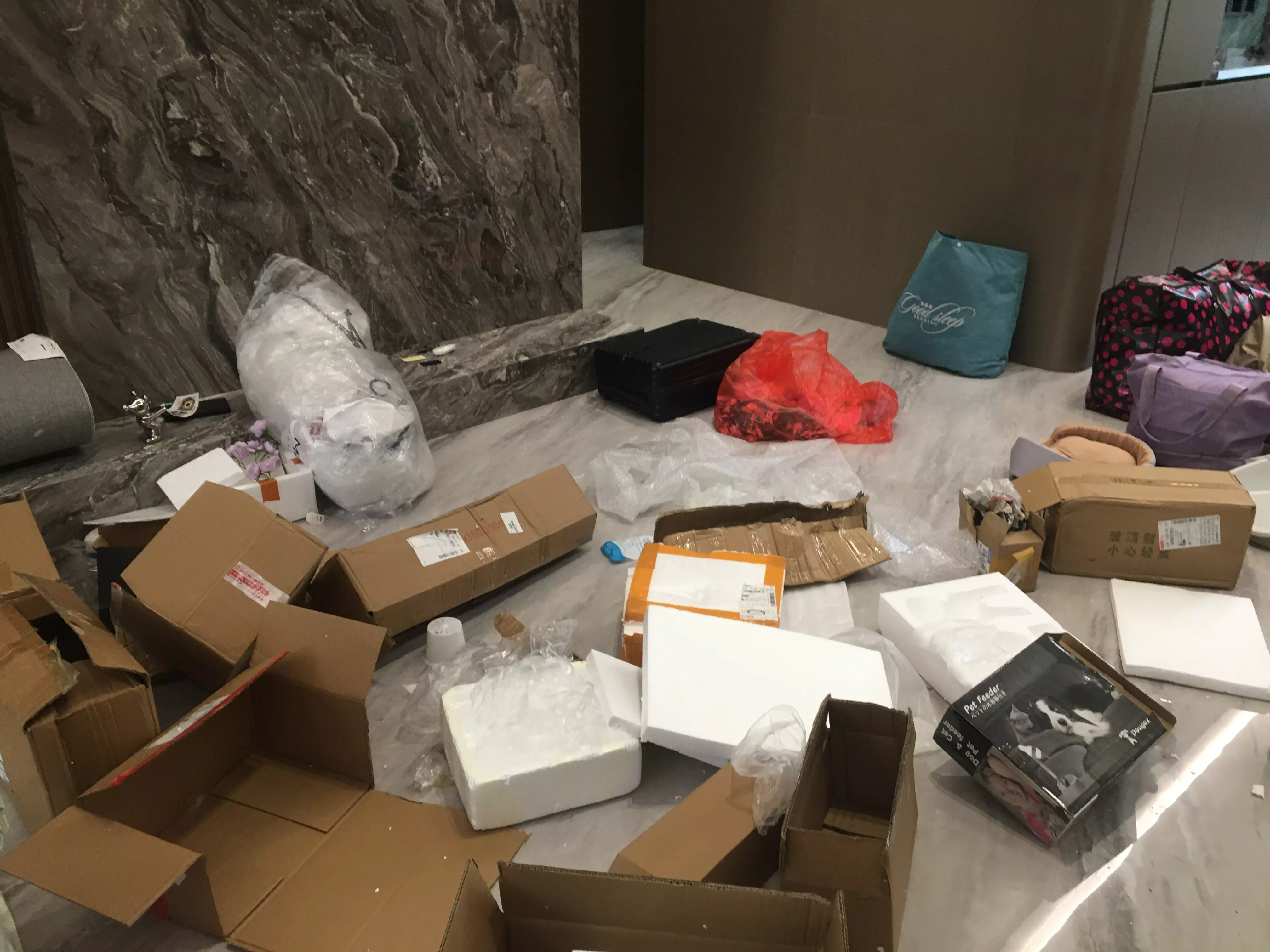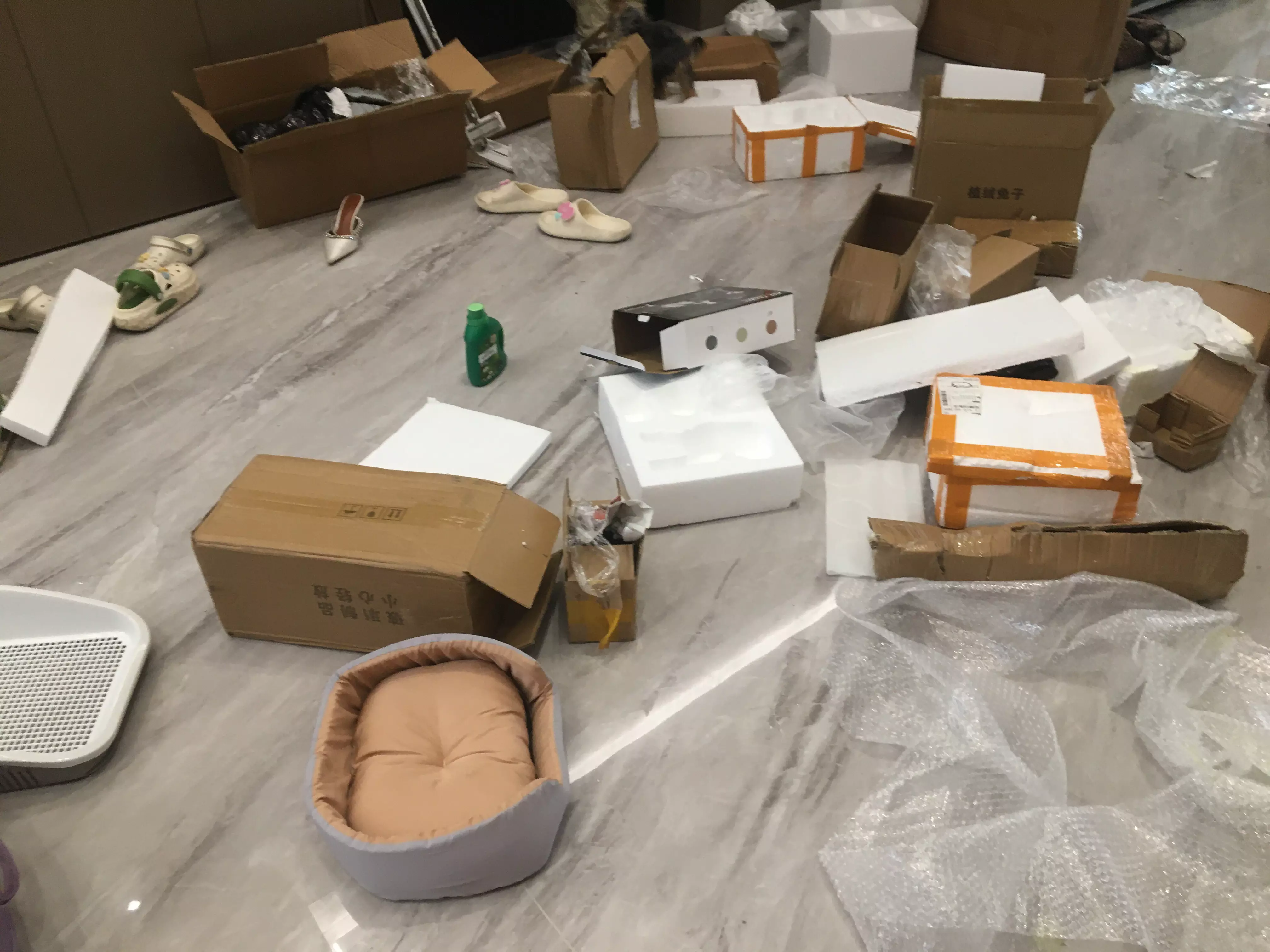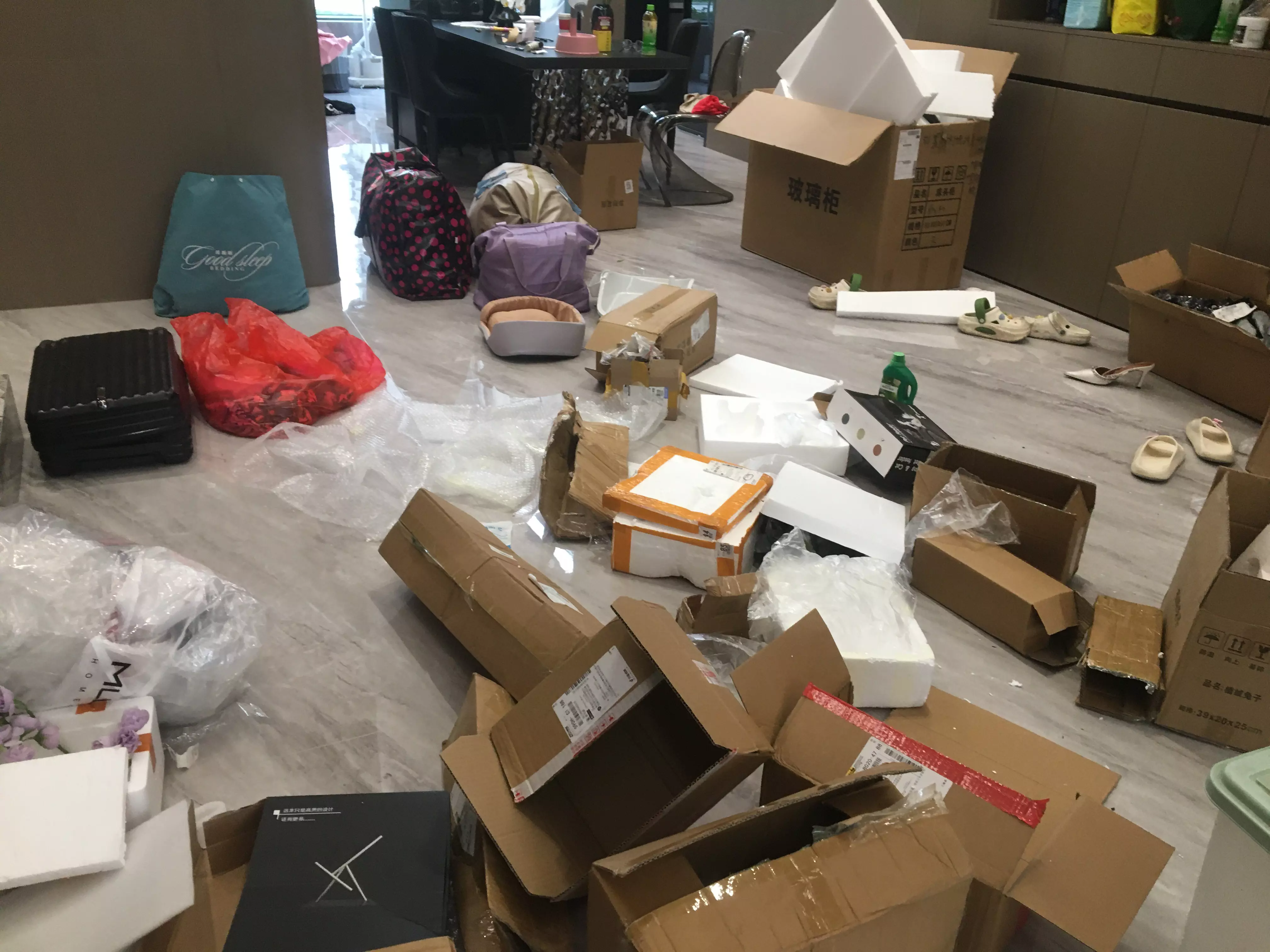 因为刚取完一后车的快递,拆完后一片狼藉(我妈买了亿点快递)