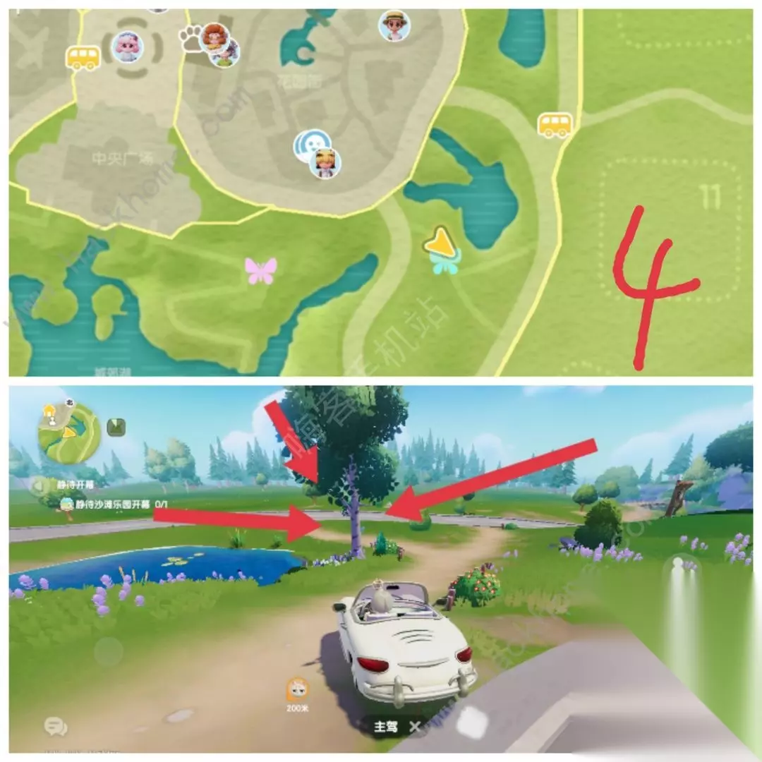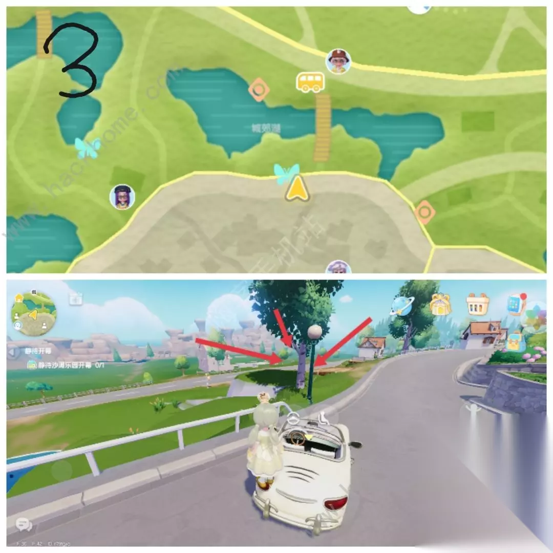 刷新点2在地图[NPC卡清]上方,城郊湖附近的白桦树上。(图5) 刷新点3在地图[城郊湖公交站]下方,木桥左边的白桦树上。(图6)