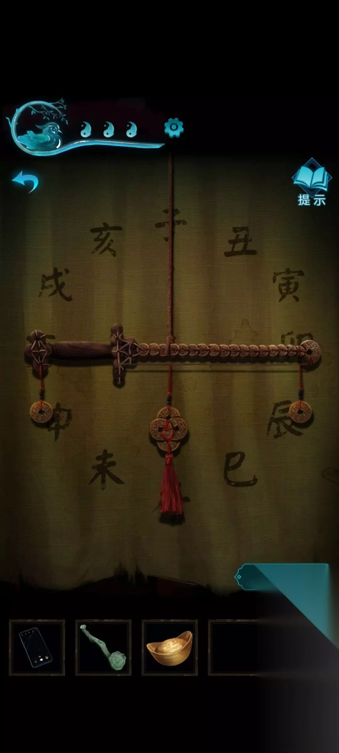 12、开始小游戏,拉动铜钱,让铜剑指向辰