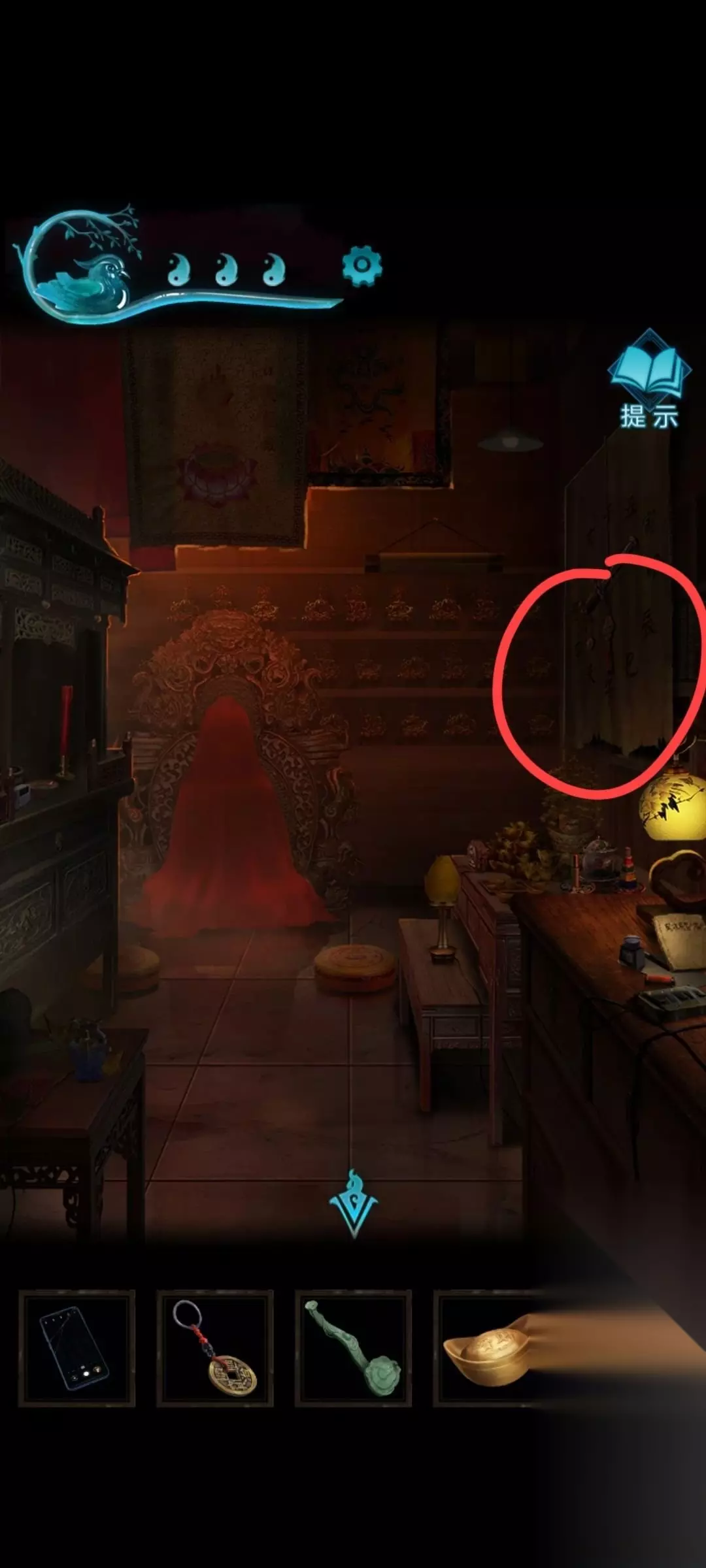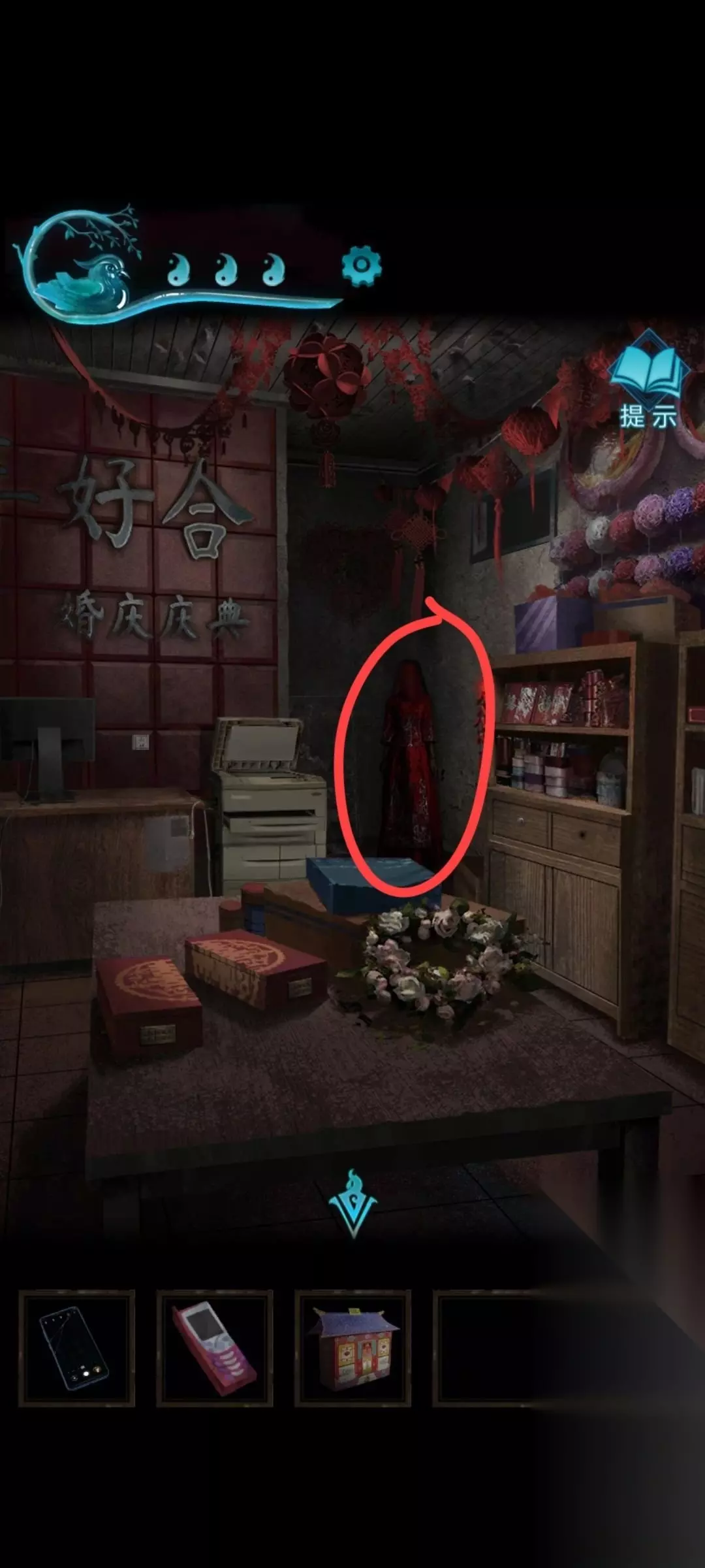 23、进去之后,点击那个纸人,拿走她的红盖头