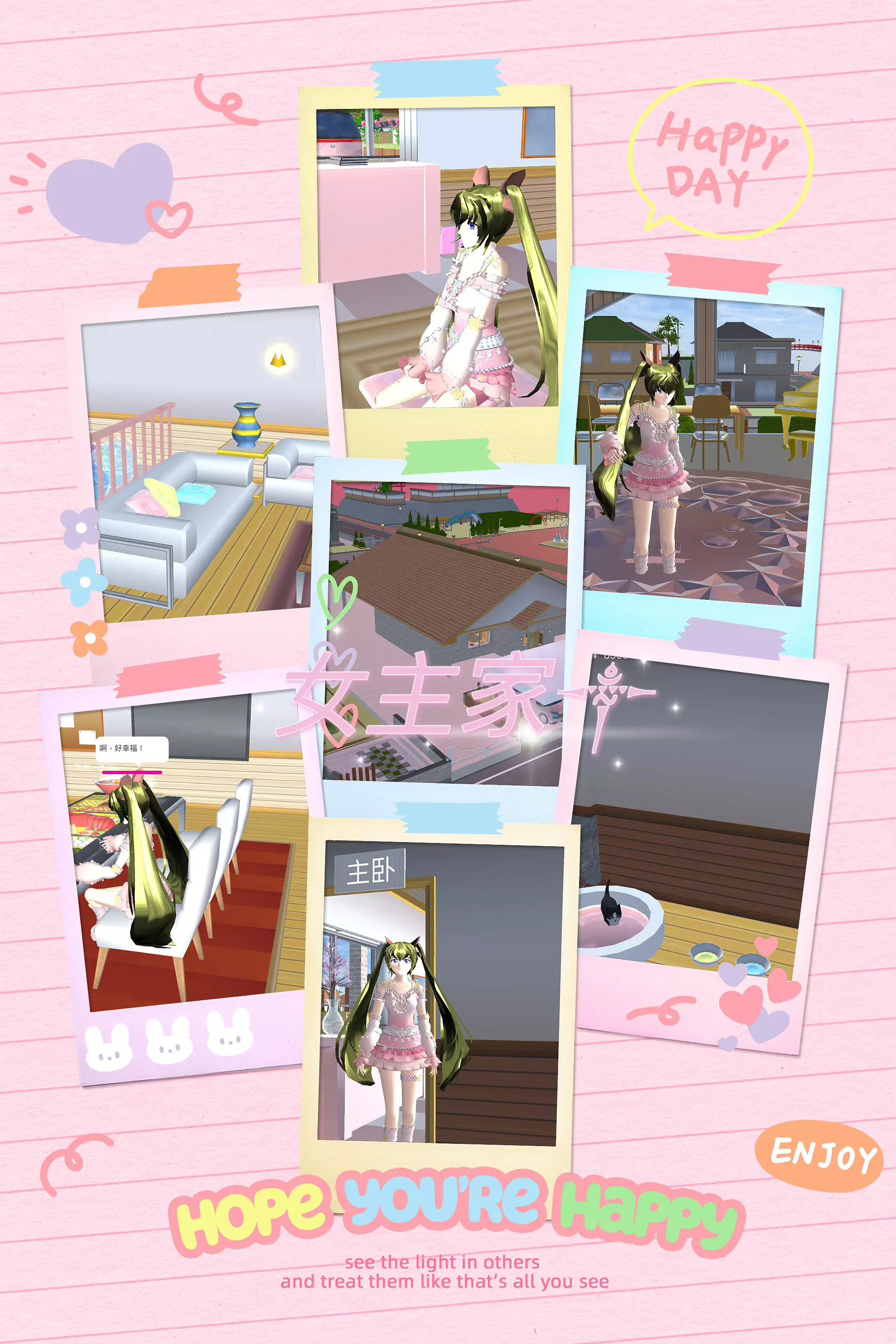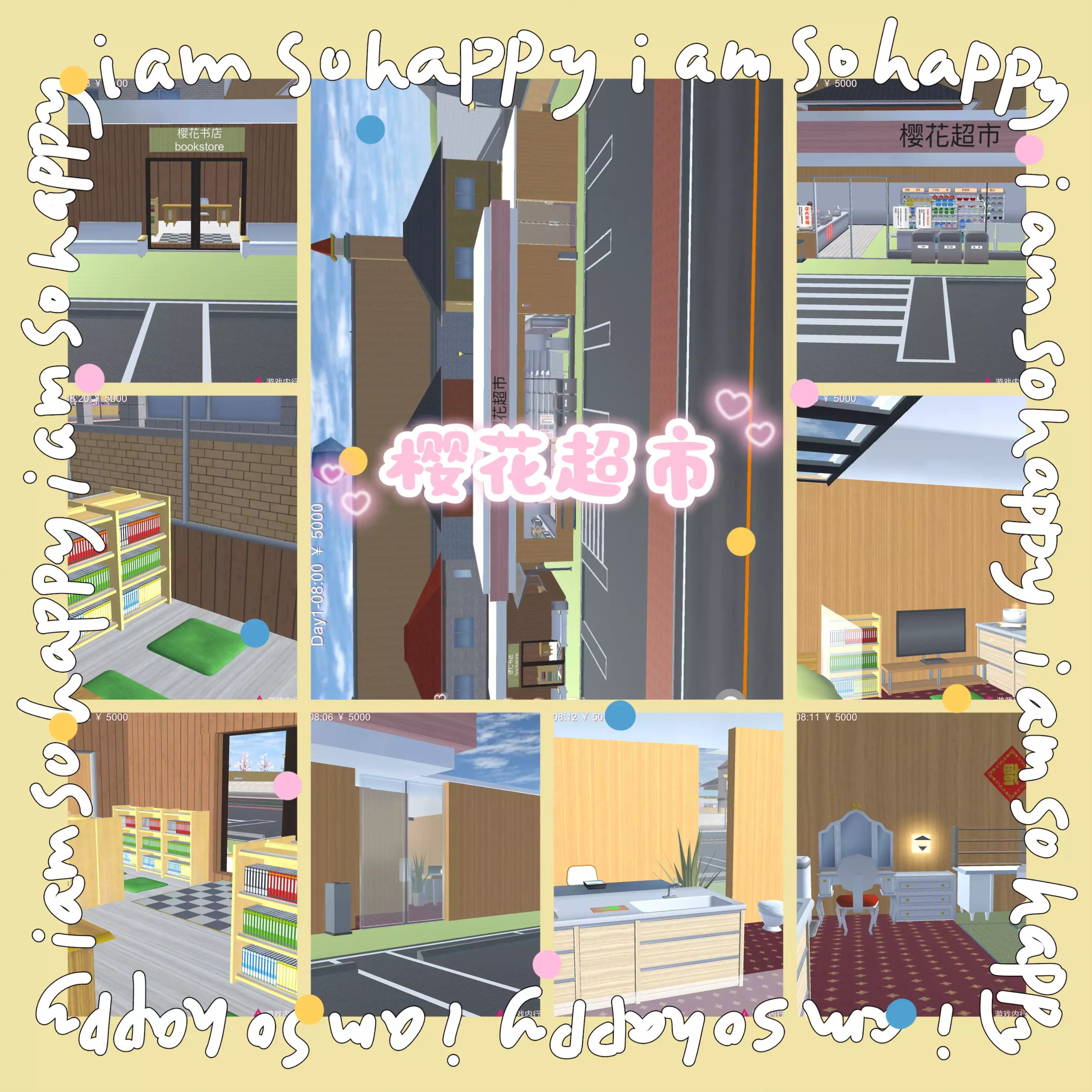 闲着没事,“更新”一下樱校 更新量排名: 1.便利店。 被我改造成了樱花超市,旁边还增加了樱花书店和便利店老板住的地方。 2.学校。 我把学校改成了水上校园₍˄·͈༝·͈˄*₎◞ ̑̑里面有桥可以走。 3.男主家。 众所周知,男主家有一块铺着红砖的地面,另外一半是空着的,而我把整个地面都用墙包了起来,男主家就有一个大院子啦 (*^▽^*) 在这个大院子里我加了一个小池塘和一个大泳池。我也把它的屋顶改成了蓝色的,材质是光泽,同样墙壁材质也改成了光泽,但是由于材料有限,考虑到材料的分配。我只把男主家房屋前面一半的墙壁给改造了,贴了墙纸,大家见谅哦(´•༝•`) 4.女主家。 阁楼被我装修成了你装不起的样子,楼下也略有改造。 5.咖啡馆 材料有限(。•́︿•̀。) 只是桌子材质换成光泽。 6.蛋糕店和寿司店 还是由于材料有限的问题,都只放了两个道具 o(╥﹏╥)o 。 📝我强烈建议官方把材料限制取消,只能放340个材料也太少了吧(•̀へ•́╮)或者限制范围广一点,加载慢一点没事,多一些材料才能让地图画面效果更好呀💕