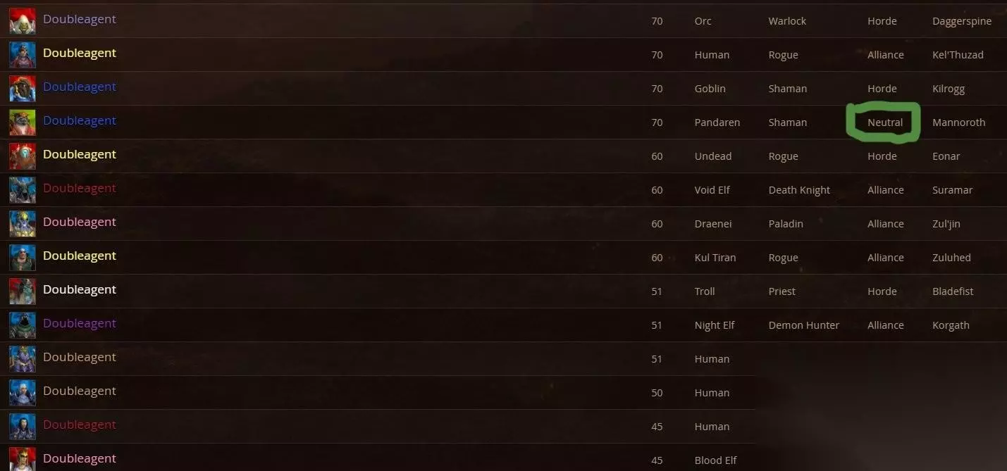 发现问题的是国外著名独狼玩家Neutralagent,他最大成就是不出迷踪岛的新手村,靠着初始采集升到满级。Neutralagent在10.1回归,不过他最近发现自己新建的熊猫人萨满并不能加入跨阵营公会,于是向暴雪发了一封邮件。